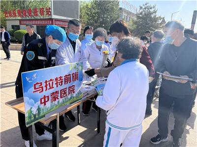 活动现场,我院医护人员为过往群众发放宣传册、提供健康指导,推进健康乌拉特前旗行动,营造人人关注、人人重视的活动氛围。