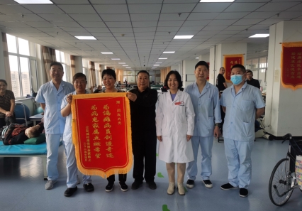 患者脑梗后,导致左侧肢体瘫痪,待病情平稳后,转入康复科,进行系统康复治疗。闫欣与治疗团队,根据患者的功能障碍,抓住病人恢复的黄金时期,并为其制定了详细的治疗方案。经过两个月的康复训练,患者从最初的卧床,到现在能够独立行走,并且逐步回归了家庭,回归社会。为了表达内心的感激,家属特意到康复治疗大厅送上了这面锦旗。