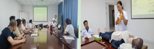 培训会上,护理部李敏副主任运用理论结合实际操作,分别向大家讲解了心肺复苏技术、自动体外除颤仪使用、创伤包扎的操作要点及注意事项。在讲解过程中,医护人员积极参与,互动学习气氛热烈,提高了医护人员在紧急情况下的应对能力。另外,通过培训,也让大家改变一些传统的认识,学习新的技能和方法,如医院环境物体表面如何清洁消毒、怎样更好的预防医院感染发生等,强化了医疗安全意识。